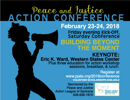 Annual Peace & Justice Action Conference: Building Beyond the Moment will be held February 23rd-24th at the Unitarian Universalist Church of Spokane, 4340 W. Ft. George Wright Dr.