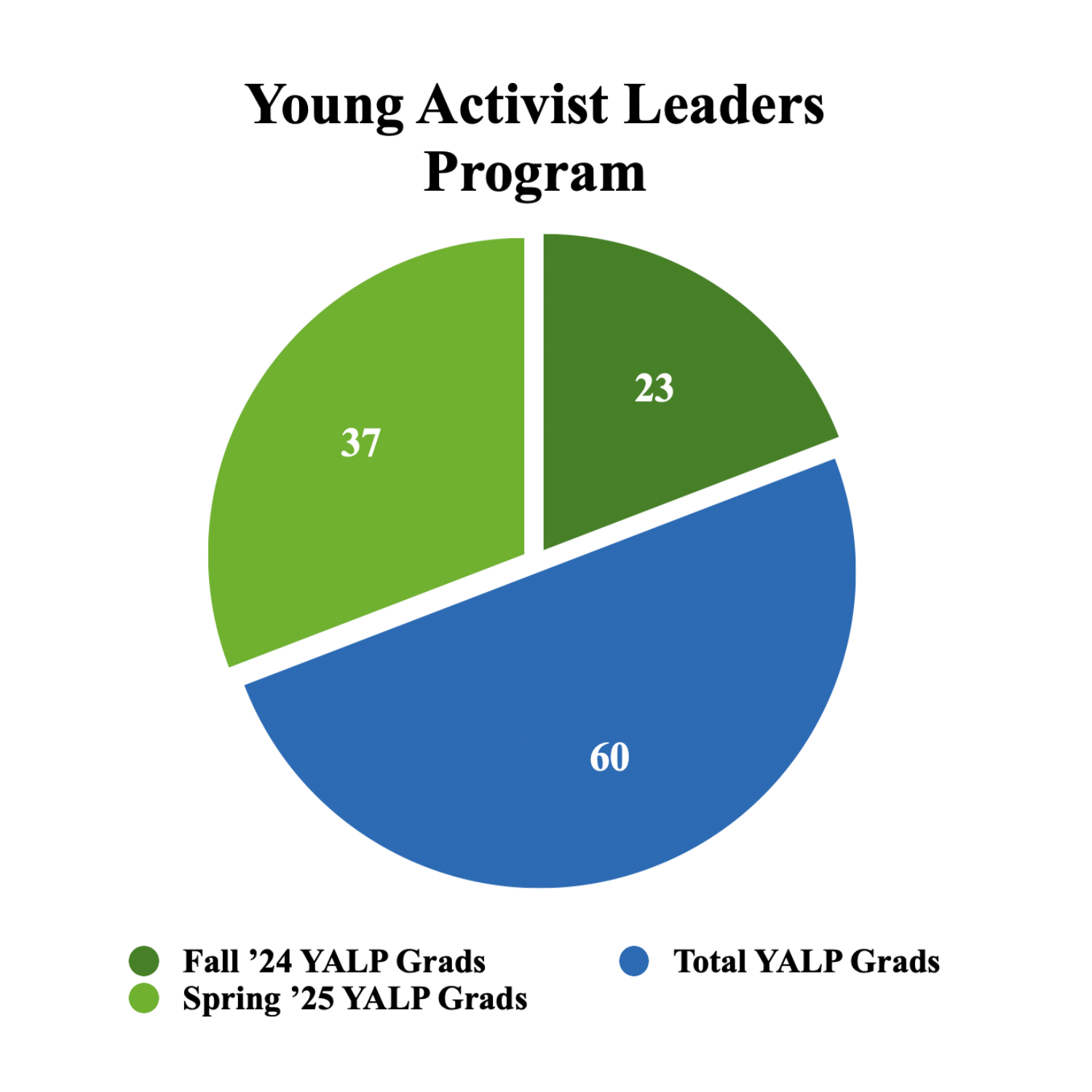 - 60 young leaders graduated from our Fall 2024 and Spring 2025 YALP cohorts, leaving the program ready to organize, lead, and make change. With an all new group set to graduate Winter 2025.