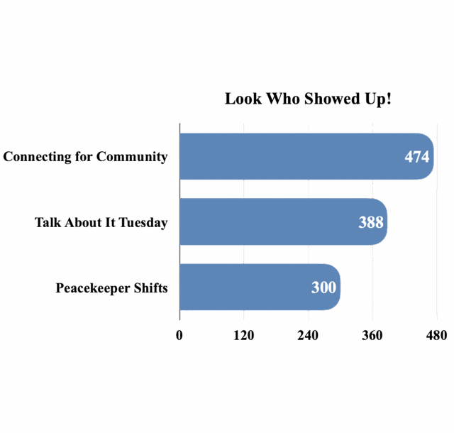 - 129 individual Peacekeepers stepped up between Jan and Nov—and together completed nearly 300 peacekeeping shifts to help keep our community safe, connected, and cared for.